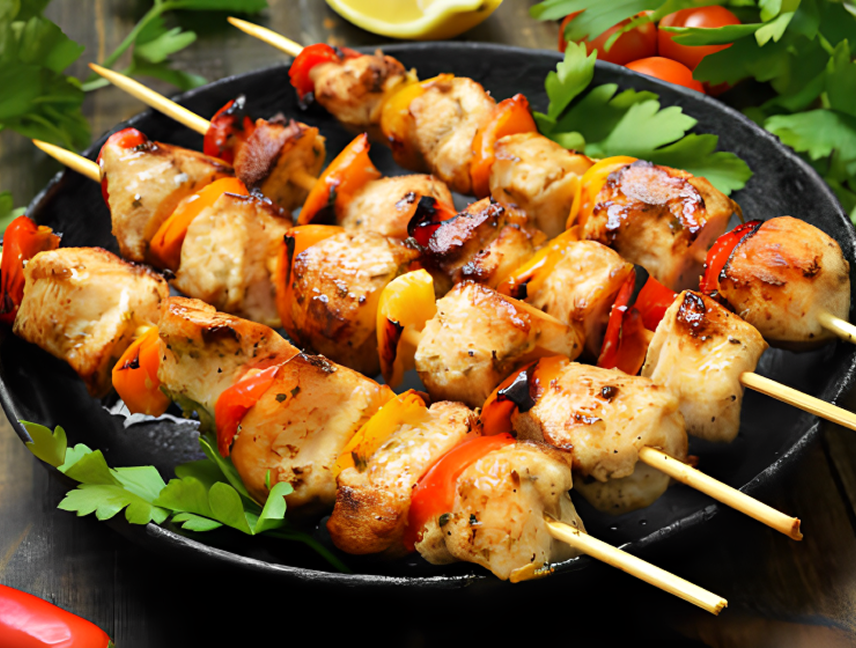These skewers showcase a masterful Maillard reaction with a deep golden sear that locks in moisture and maximizes savory flavor. The uniform knife work on the chicken and peppers ensures perfectly even cooking and a professional high-end presentation. Vibrant flashes of red and yellow bell peppers provide a stunning color contrast against the rustic darkened […]